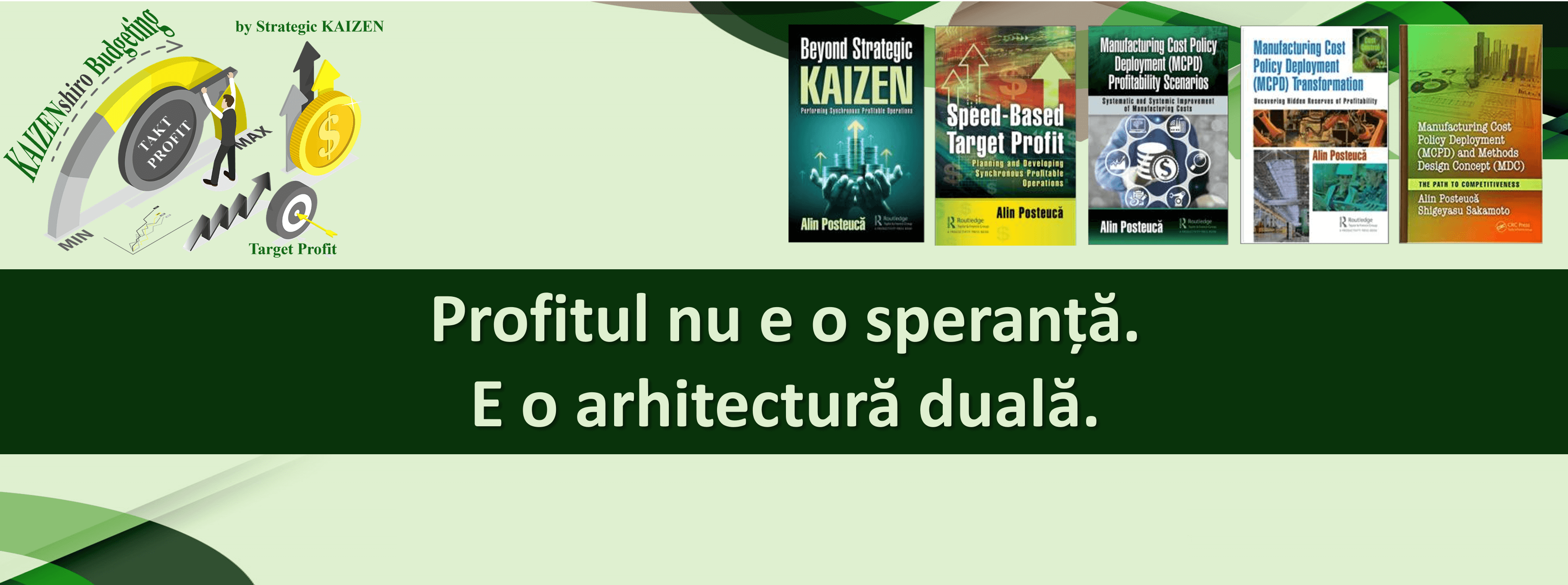 Dr. Alin Posteucă – autorul conceptului Strategic KAIZEN și al metodologiilor MCPD, SBTP, SPO, Takt Profit și KAIZENshiro Budgets. Publicat internațional de Taylor & Francis, Routledge, CRC Press, Productivity Press. Laureat al premiului „Traian Vuia” al Academiei Române pentru cercetare în excelență operațională.